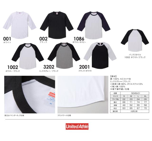tシャツ 無地 7分袖 メンズ UnitedAthle ユナイテッドアスレ 5.6オンス ラグラン3/4スリーブTシャツ ユニフォーム【5045-01】送料無料 通販A15