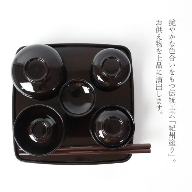 紀州塗り 仏膳セット お仏壇用 日本製 5.5寸 16.5cm 低型 仏器膳セット 美里 総溜 供え物 お供え物 供物 仏具 お盆 盆飾り お彼岸 ご法事 霊供膳 霊具膳 祭壇 御膳 お膳 法要 新盆 初盆 供物台 九重椀 国産 送料無料