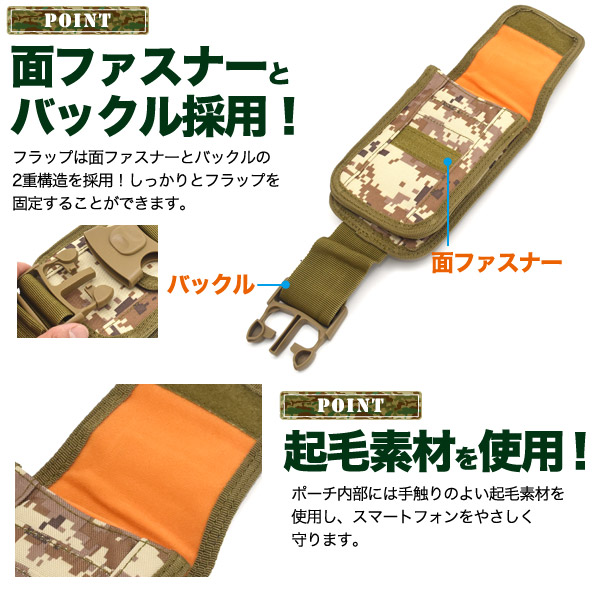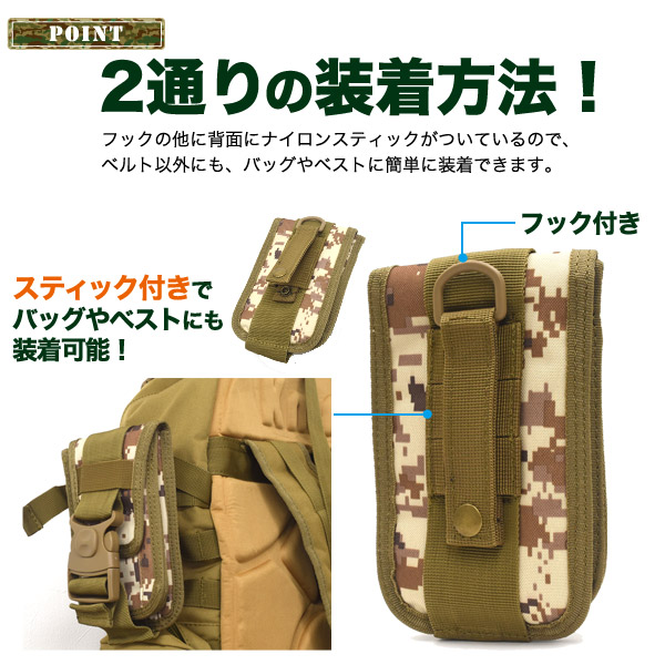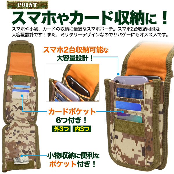 ミリタリーポーチ スマホポーチ スマホ 2台収納可能 カードポケット付き サバゲー サバイバルゲーム ミリタリーデザイン 迷彩柄 小物入れ アウトドア 作業着 キャンプ 登山 旅行用品 旅行用 ミニバッグ ウエストポーチ スマホ ガジェット 周辺機器 収納 サブバッグ