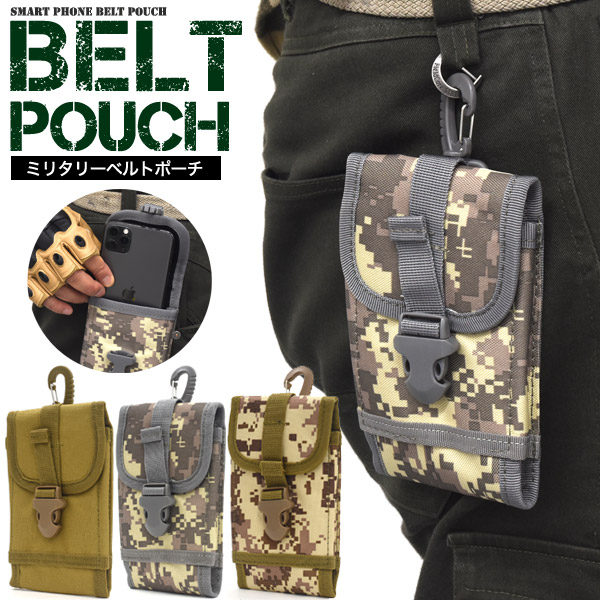 スマホや雑貨の収納に最適なミリタリーベルトポーチ。iPhone 11 Pro Maxも収納できる大型サイズです。 また、ミリタリーデザインなのでサバゲーにもオススメです。