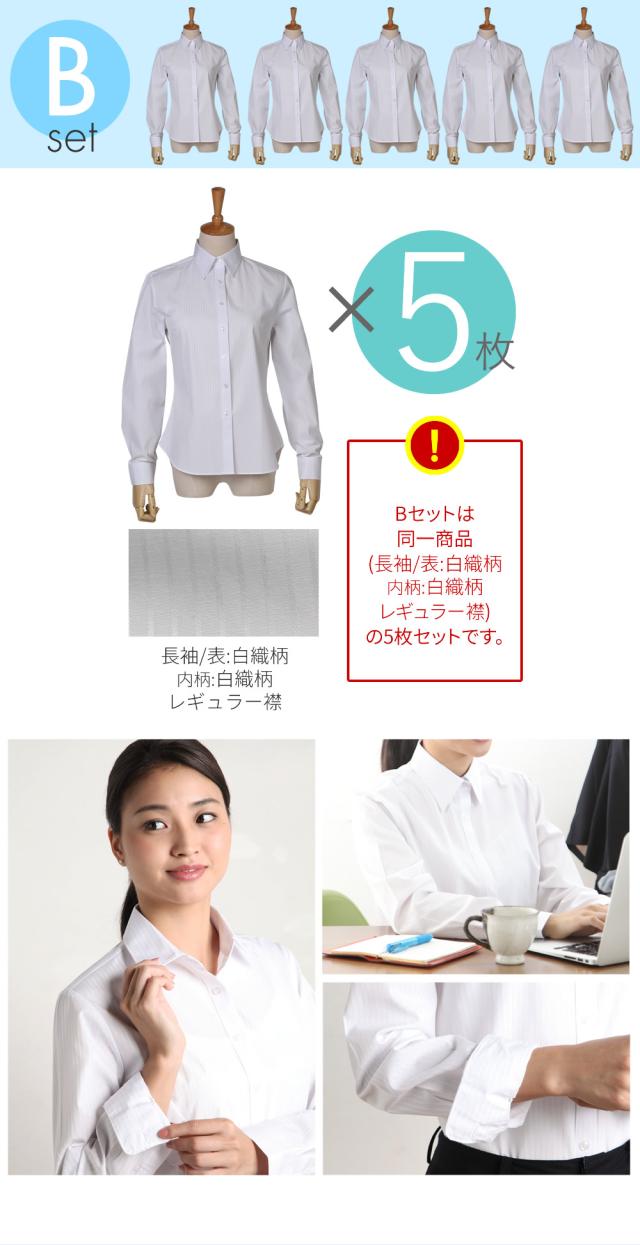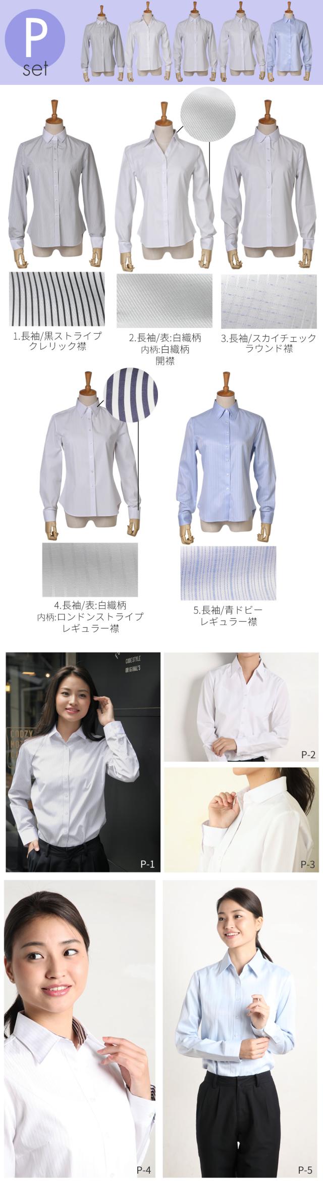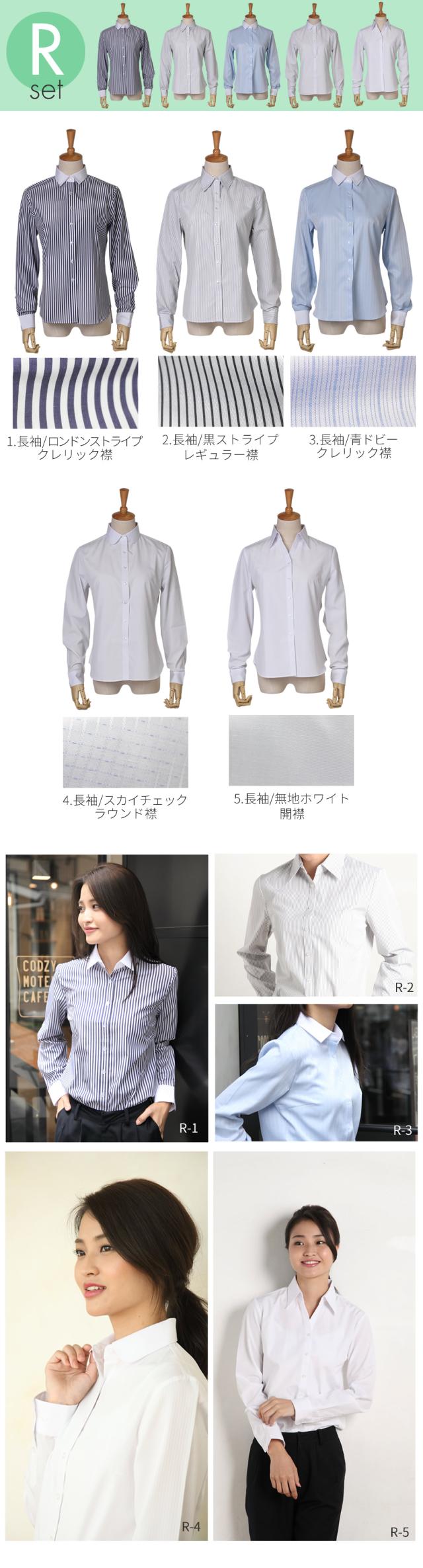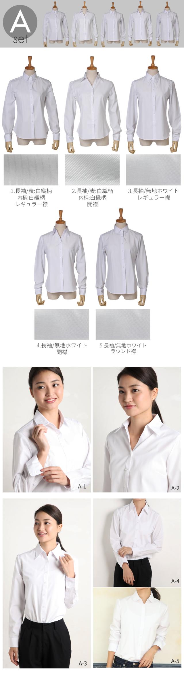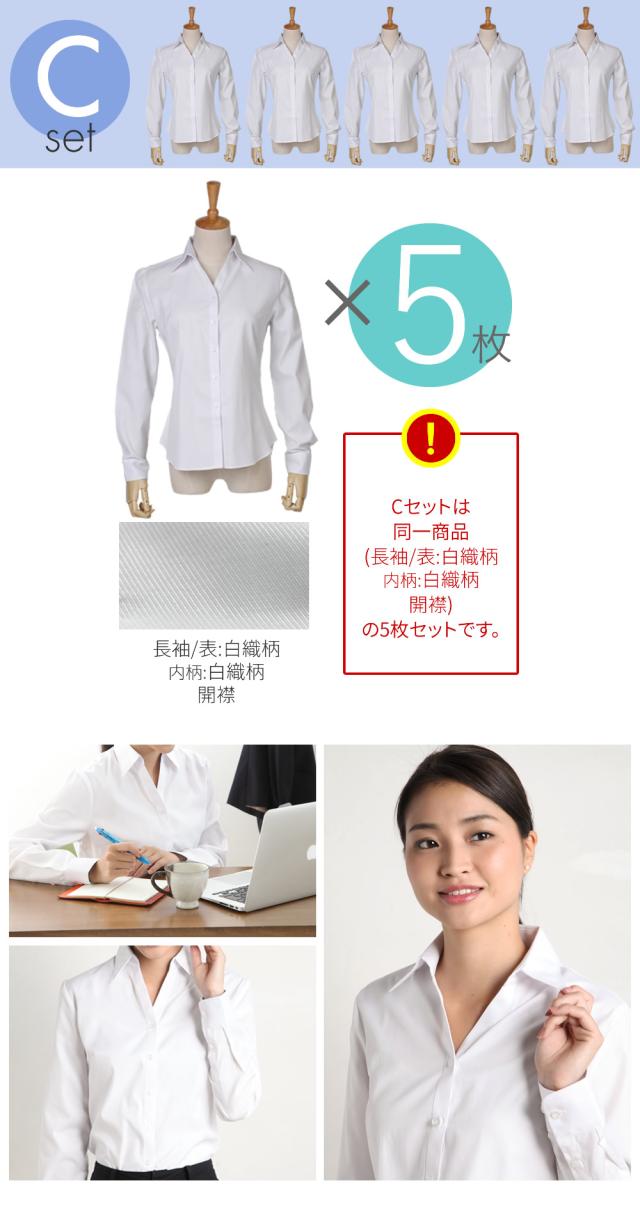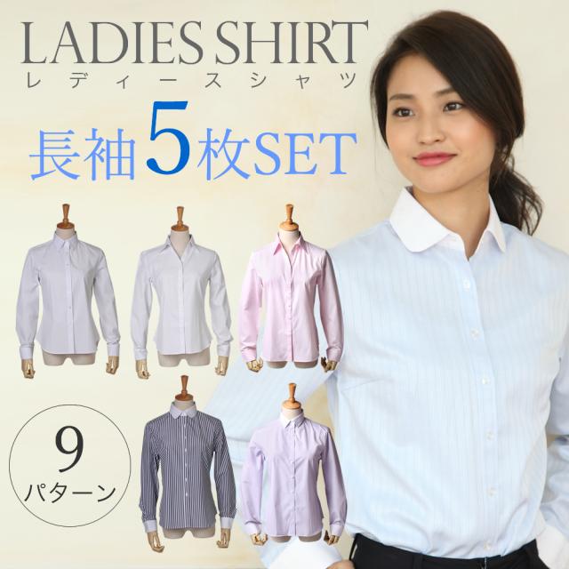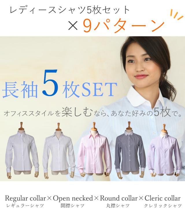 【5枚セット】レディースシャツ レギュラー 開襟 ラウンド襟 丸襟 クレリック襟 ブラウス オフィス 長袖 ワイシャツ at-ll-set-1754 事務服 おしゃれ yシャツ ビジネス OL 制服カッターシャツ