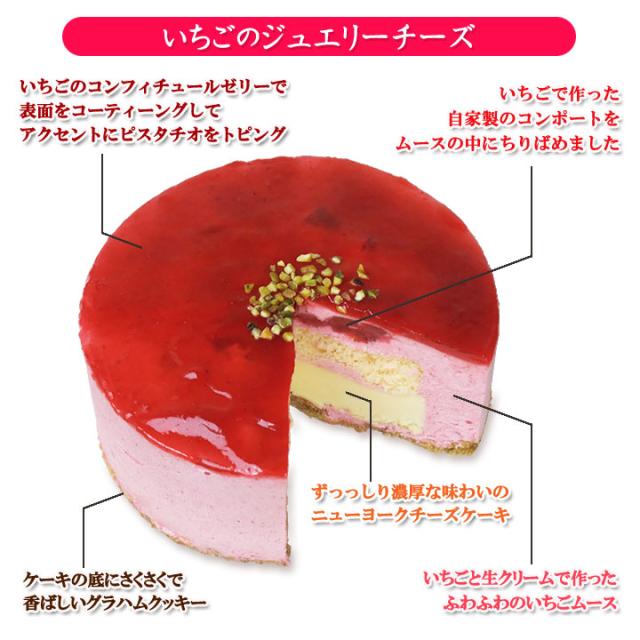 いちごをたっぷり使ったゼリーとムースで作った、宝石箱のような煌めくチーズケーキ