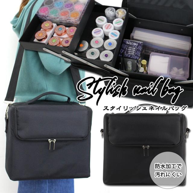 宅配便 スタイリッシュネイルバッグ[ブラック] | ジェル ネイル ネイル収納 ネイル検定 出張ネイル ネイル ネイル用品 バニティバッグ ネイルバッグ ネイル道具 コスメバッグ ネイル ネイル用品