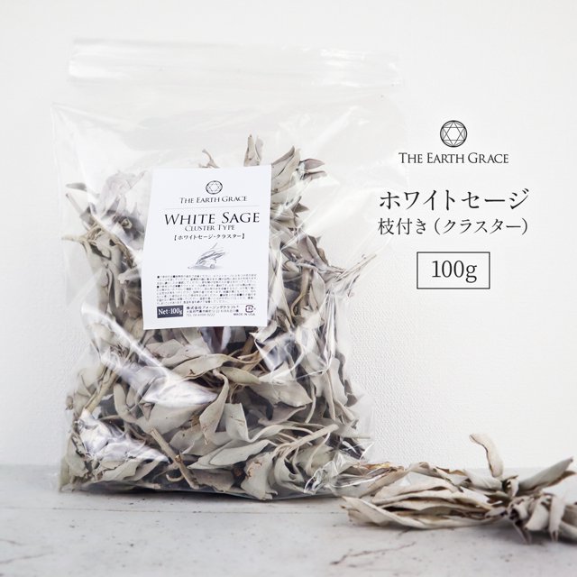 ホワイトセージ 枝付き (クラスター) 約100g 高品質 無農薬 浄化用 パワーストーン 浄化 セージ セージの葉 枝付きリーフ whitesage セイジ 乾燥 カリフォルニア産 お香 スマッジング ヨガ 瞑想