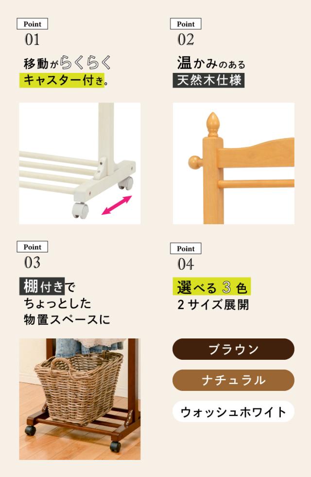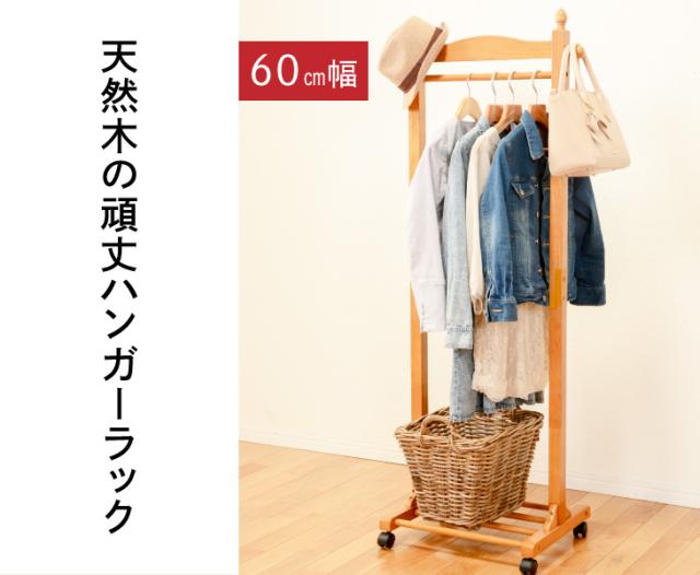 ハンガーラック 木製 60cm幅 洋服かけ おしゃれ ラック ワードローブ スリム コート掛け 衣類収納 省スペース 天然木 キャスター付き 送料無料