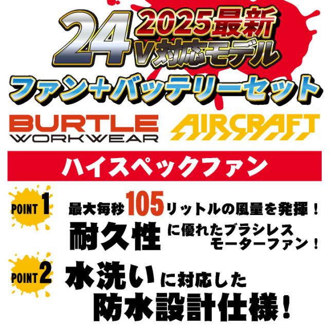 2025年新型24V バートル ファンバッテリーセット バッテリーファンセット 春夏 エアークラフト エアクラ 人気のBURTLE AIRCRAFT 空調 ファンユニット バッテリ 黒ファン ブラック 強力24V AC09+AC09-1 即日出荷 bt-fanbt1
