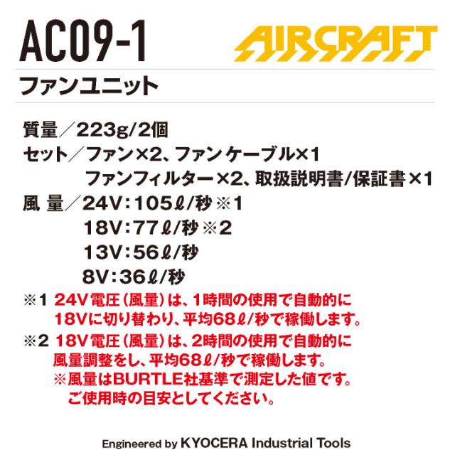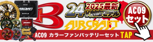 BURTLE バートル エアークラフト \最新バッテリー強力24V・選べる3色/ [AC09+AC09-1] ファン 空調作業服用 充電器 ファンケーブル ファンフィルター 熱中症対策