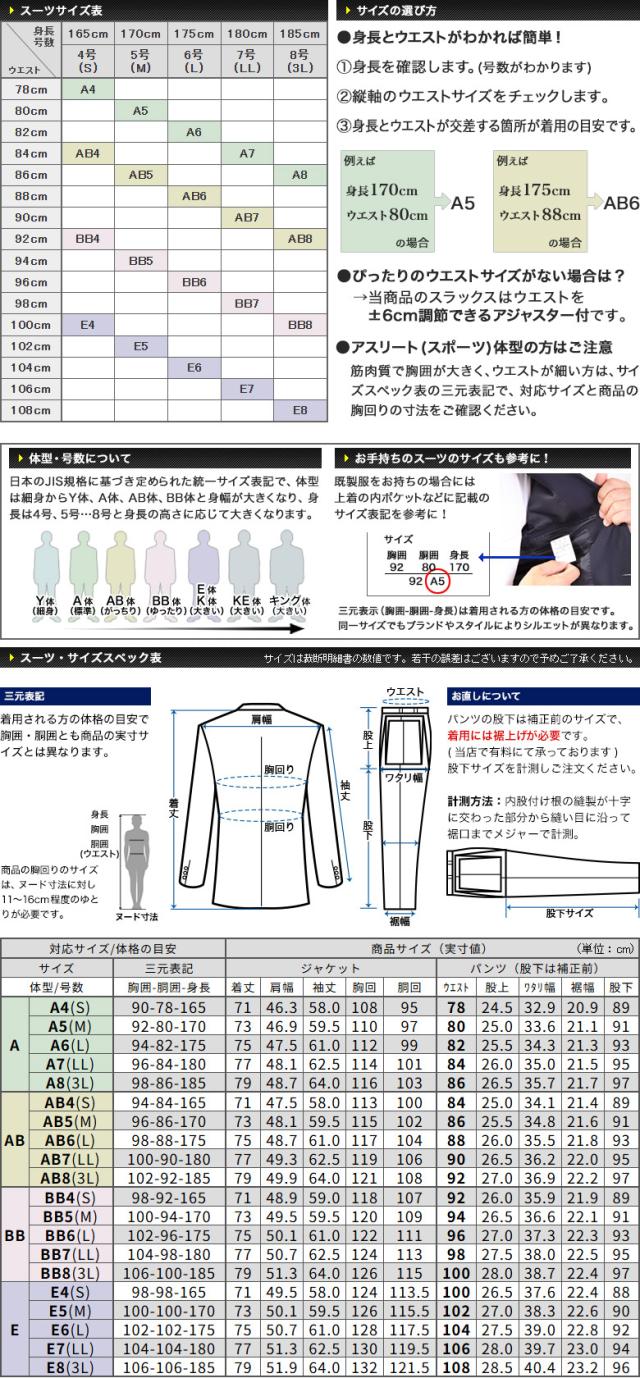 | ▼ジャケット ・2ツボタン ・切り台場仕立て ・見返しピンポイントステッチ ・玉縁ポケット ・D管止め ・袖額縁仕立て ・袖3ツボタン ・センターベント ・背抜き仕立て (春夏秋/オールシーズン対応の2タイプ) ▼スラックス ・ワンタック(±6cmウエスト調節アジャスター付き) ・持ち出し、前カン、天狗 ・膝裏当て ・上下とも洗濯機で洗えるウォッシャブルタイプ |