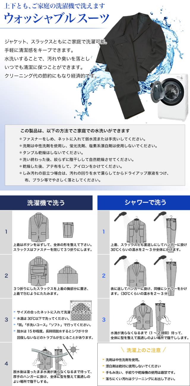 なめらかな手触り・シワや虫喰いに強い新素材を使用、繊維技術の進化を実感できるお手頃価格のスーツ。細身のスーツが苦手な方にお薦め、ゆとりのあるサイズ型紙を使用しています。上下ともにご家庭で水洗いでき、いつも清潔に保てます。ウエスト調節アジャスター(±6cm)が付いているので、 体型の変化にも対応できて安心です。