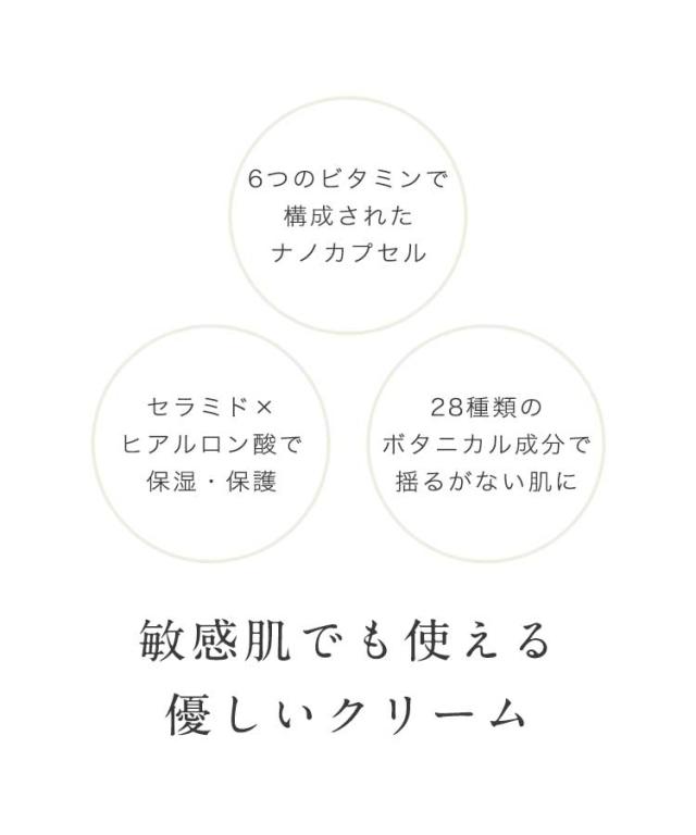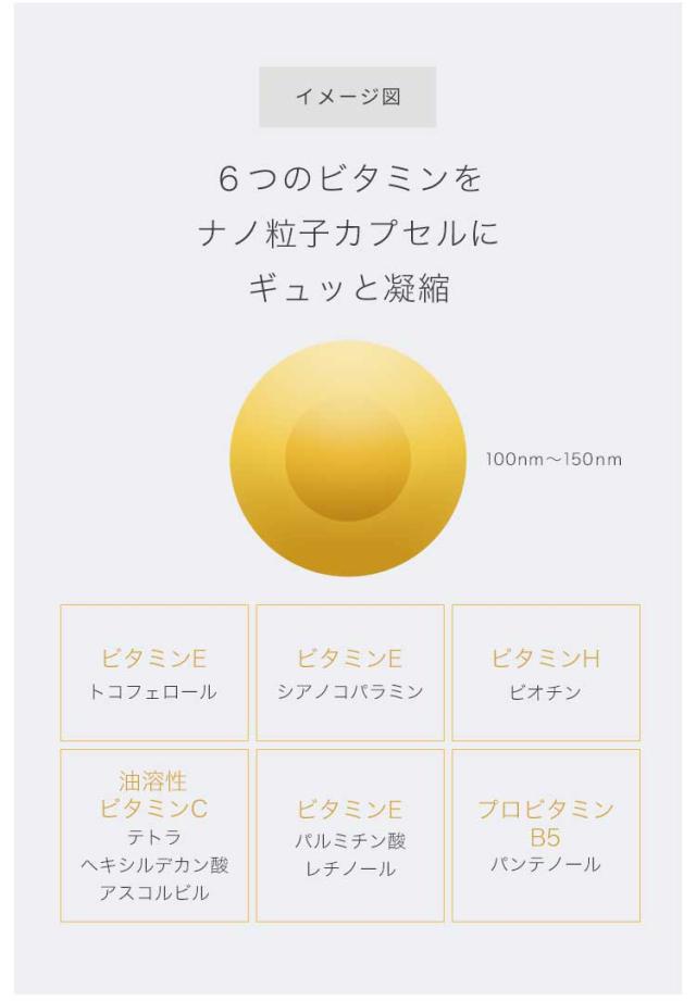 6種類のビタミンを凝縮させた美容カプセル入りと20種類以上の植物由来成分を配合。