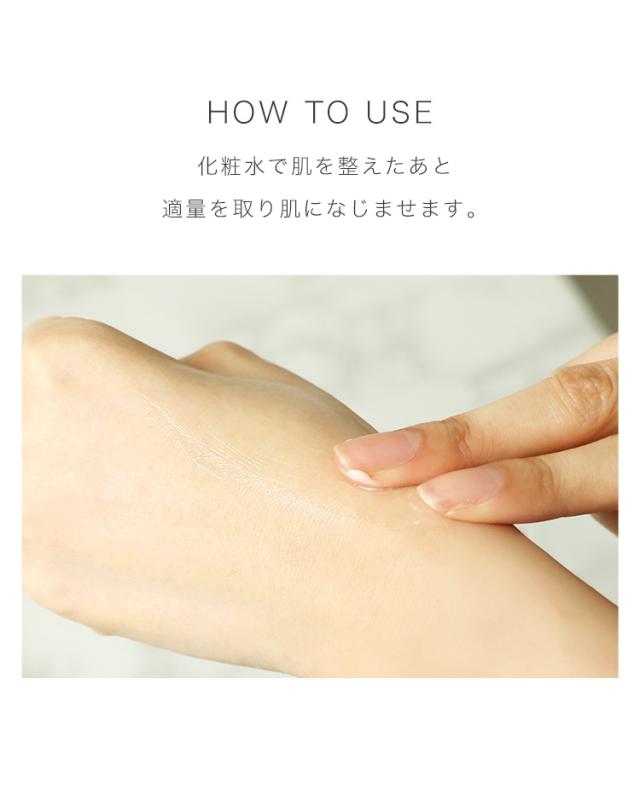 化粧水で肌を整えたあと、適量を取り肌になじませます。