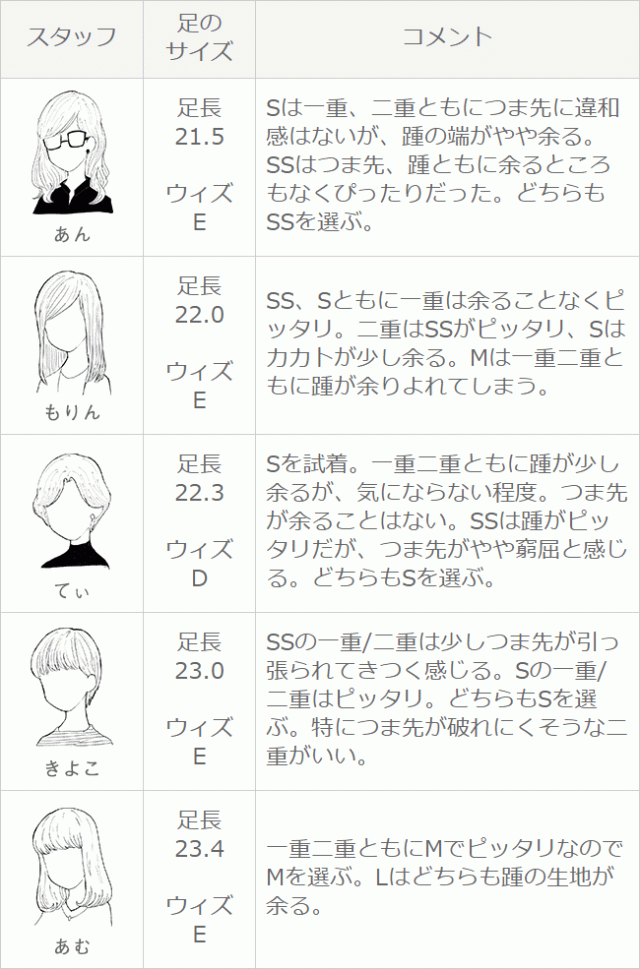 ※足の形には個人差があります。スタッフ試着感想は参考程度にお考え下さい。