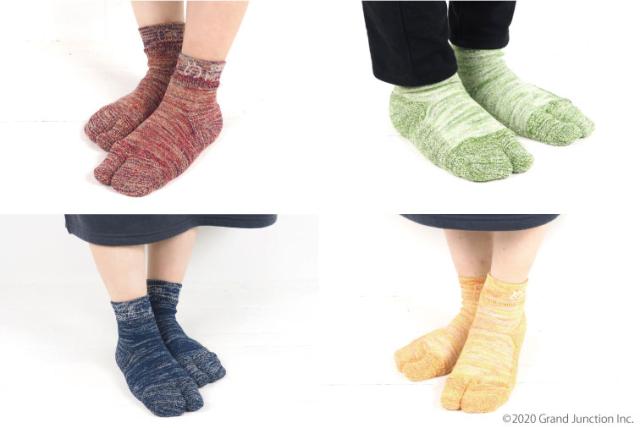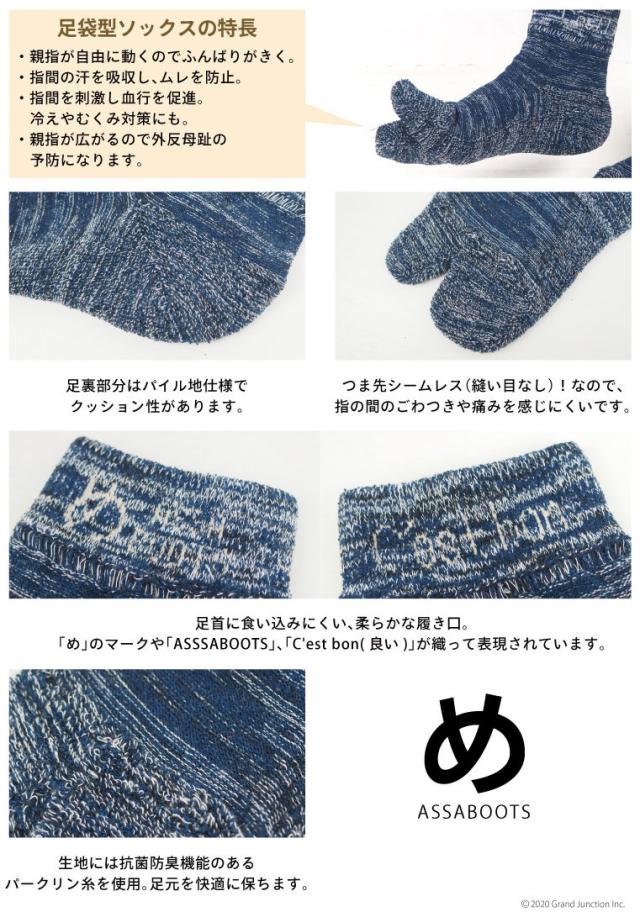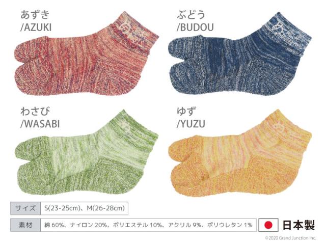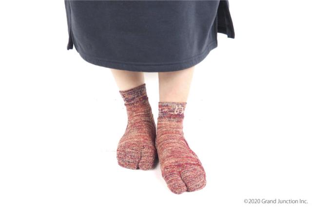 ■岡山県倉敷市にある創業 大正8年の老舗地下足袋メーカー・丸五の足袋ソックスです。クルー丈でオールシーズン対応、抗菌・防臭効果のある「パークリン糸」を使用した綿混紡の素材でさらっとした快適な履き心地です。足裏部分はパイル地でクッション性があるのもうれしい仕様です。