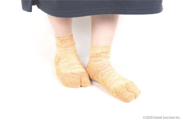 ■親指が独立している足袋ソックスは、親指が自由に動かせるので足指で地面をとらえる歩き方ができます。 それによって指が鍛えられるので外反母趾の予防や、疲れにくい正しい歩行がしやすくなる効果があります。