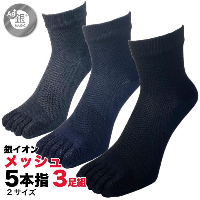 五本指靴下 メンズ くるぶし 夏 通気 蒸れない 抗菌 吸汗速乾 銀イオン消臭 ビジネス スポーツ 3色セット 25cm-27cm