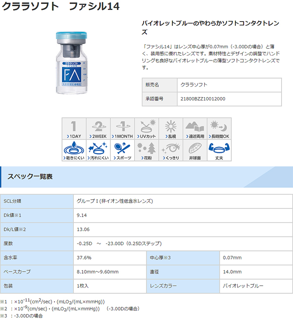 ■販売名:シード クララソフト ファシル14