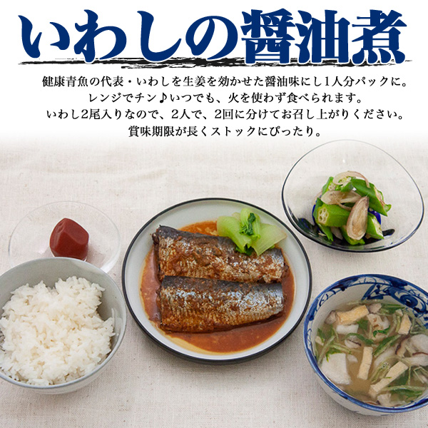レトルト食品 いわしの醤油煮 1人分 1人前 簡単調理 レンチン 和食 非常食 保存食 イワシ 2尾 主菜 晩ごはん 夕食 昼食 温めるだけ 惣菜 魚料理 和惣菜 防災食 お惣菜 レトルト 魚 時短 調理済み 一人分 一人前 魚の煮付け 煮付け 晩御飯 楽ちん 時短 パウチ おかず 惣菜