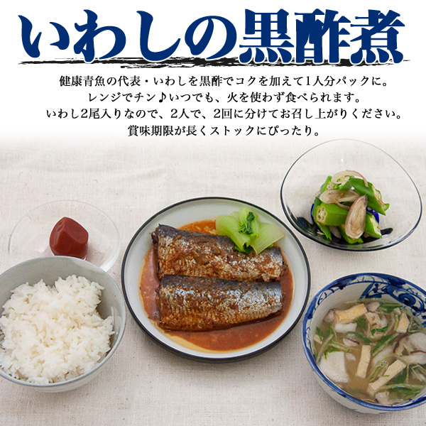 レトルト食品 いわしの黒酢煮 1人分 1人前 簡単調理 レンチン 和食 非常食 保存食 イワシ 2尾 主菜 晩ごはん 夕食 昼食 温めるだけ 惣菜 魚料理 和惣菜 防災食 レトルト 魚 時短 調理済み 一人分 一人前 魚の煮付け 煮付け お惣菜 晩御飯 楽ちん 時短 パウチ おかず 惣菜