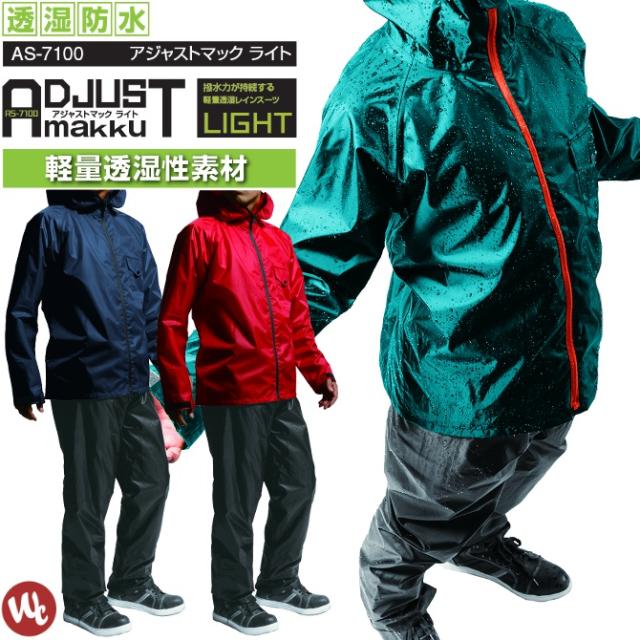 レインスーツ アジャストマックライト AS-7100 Makku(マック)上下セット 収納袋付き レインウェア 合羽 メンズ レディース 3カラー 透湿 軽量 アウトドア レインウェア 作業着