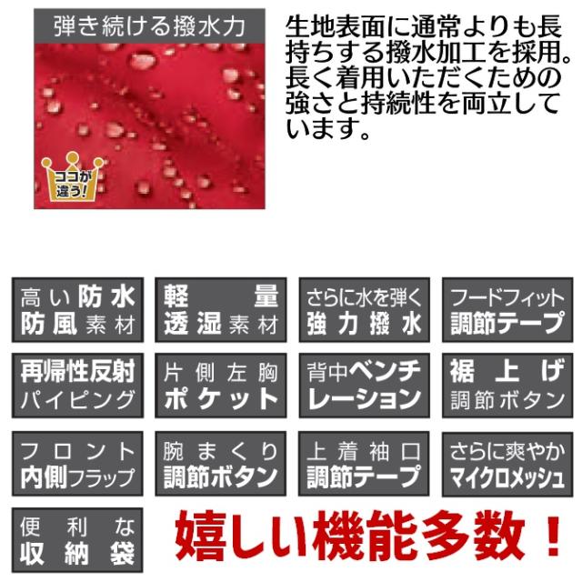 | 素材 | 表:ポリエステル100%(ポリウレタン透湿コーティング) 裏:ポリエステル100%(メッシュ) | |||