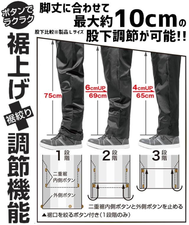 裾上げ調節ができる!軽くてムレない!透湿防水レインスーツ