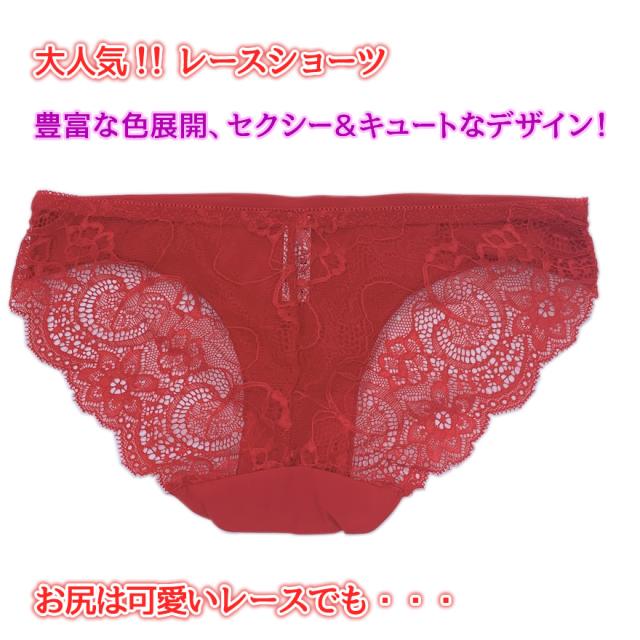 【メール便】ショーツ パンツ セクシー キュート レース ランジェリー パンティ レディースインナー 赤 レッド 送料無料