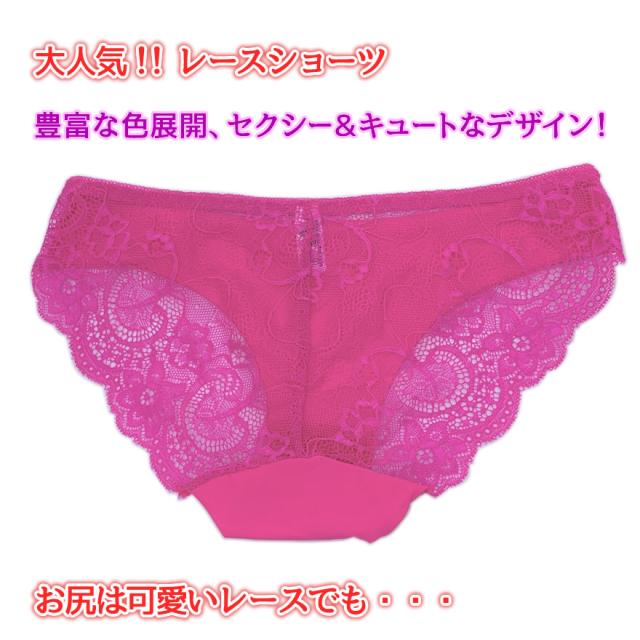 【メール便】ショーツ パンツ セクシー キュート レース ランジェリー パンティ レディースインナー ショッキングピンク 送料無料