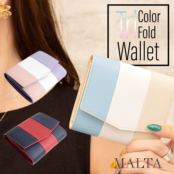 ミニ財布 三つ折り レディース 財布 革 小銭入れ ボックス型 カード入れ サフィアーノ 牛革 フラップ トリカラー コンパクト 小さい財布 小さめ かわいい 送料無料 ギフト 母の日 プレゼント ギフト