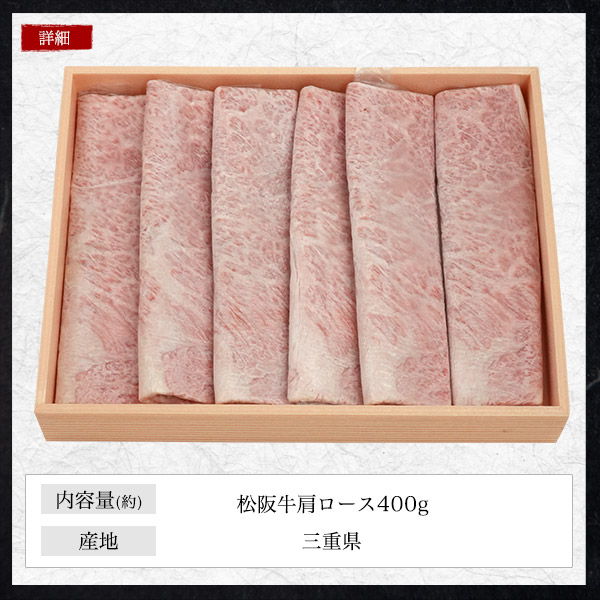 肉 ギフト 松阪牛 肩ロース 400g A5ランク 国産 和牛 牛肉 お肉 すきやき しゃぶしゃぶ スライス肉 景品 お祝い 霜降り 1枚ずつ包装 黒毛和牛 スキヤキ すき焼き シャブシャブ ブランド牛 松坂牛 2025年 お歳暮 ギフト 熨斗対応