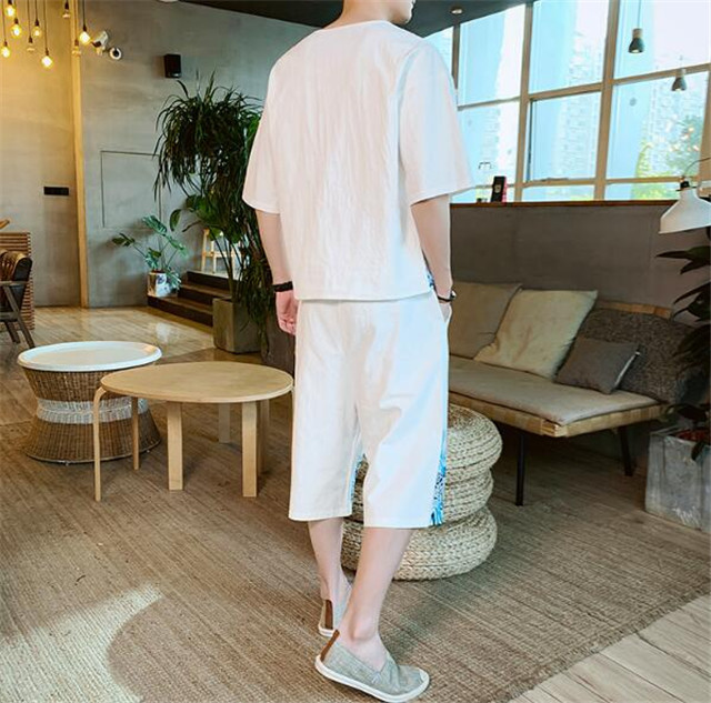 綿麻セットアップメンズ 刺繍スウェットセットアップ ジャージ 半袖シャツ ハーフパンツ 薄手 2点セットアップ 夏 大きいサイズ
