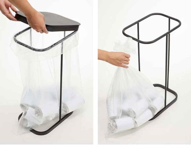 袋を掛けてフタをするだけでゴミ袋になる、LUCEの分別ゴミ袋ホルダー