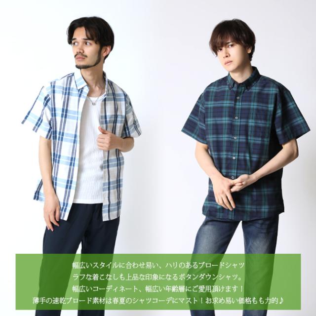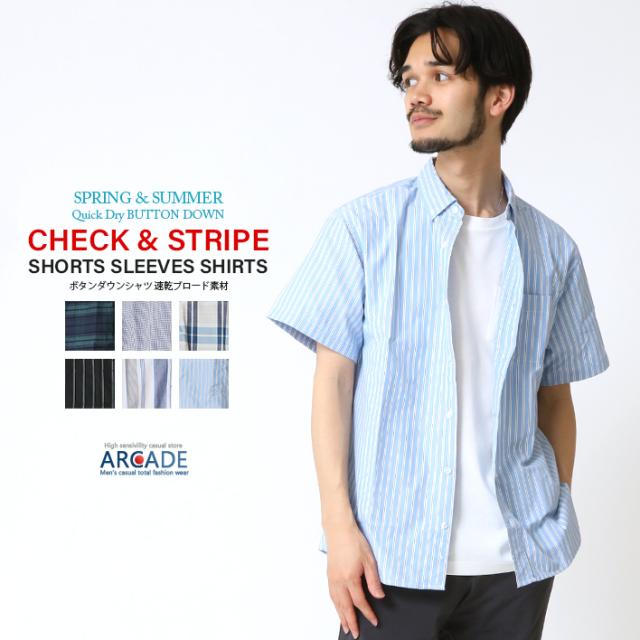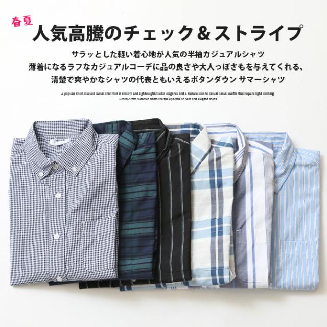 半袖シャツ メンズ カジュアルシャツ シャツ ボタンダウンシャツ ストライプ チェックシャツ ストライプシャツ 柄シャツ トップス ブロードシャツ 夏新作 シャツ