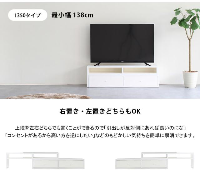テレビ台 ローボード コーナーボード TVボード ホワイト 白 伸縮 おしゃれ 北欧 伸縮テレビボード ロータイプ テレビボード コーナー T-003/1350 nail ☆