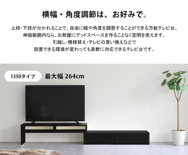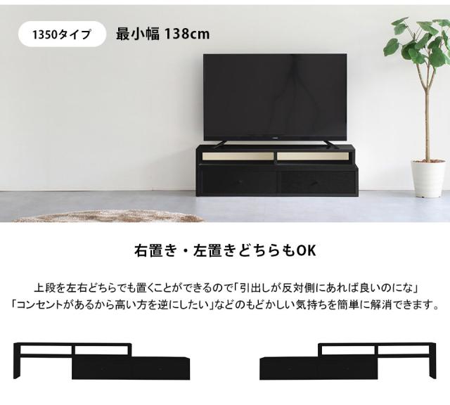 テレビ台 ローボード コーナーボード TVボード 伸縮 おしゃれ 伸縮テレビボード ブラック 光沢 ロータイプ テレビボード コーナー T-003/1350 black ☆