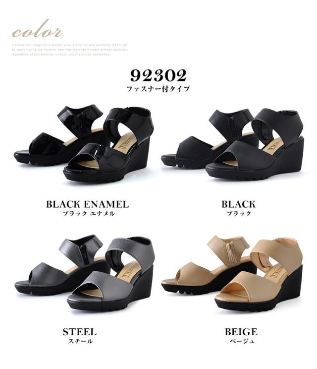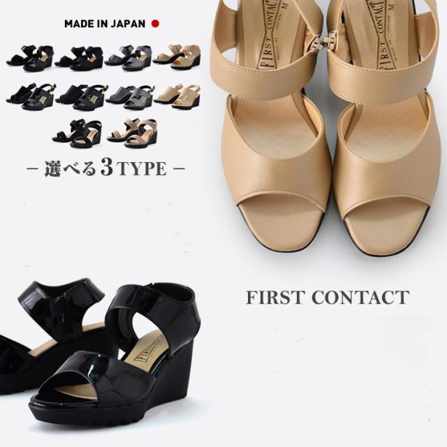 【送料無料】FIRST CONTACT ファーストコンタクト 美脚 ウェッジソール レディース ヒール 黒 厚底 ウエッジソール ミセス 靴 歩きやすい 疲れない 痛くない スポーツサンダル ナース サンダル ストラップ 92302 92303 92308 サンダル