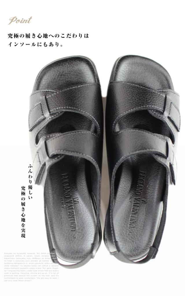 【送料無料】日本製 LUCIANO VALENTINO ITALY ルチアーノ バレンチノ コンフォートサンダル レディース 歩きやすい ストラップ 黒 オフィスサンダル 疲れない 美脚 かわいい サンダル 疲れにくい ナースシューズ 19710