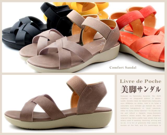 送料無料 LIVRE DE POCHE リーヴル・ド・ポッシュ レディース 32363 日本製 ゴムベルトサンダル カジュアル サンダル レディース 歩きやすい ウェッジソール スポーツサンダル スポサン ローヒール オフィスサンダル サンダル