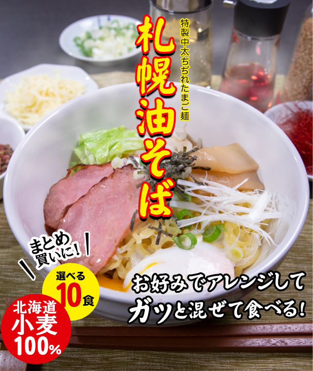 安心安全な北海道小麦で作った麺の風味。タレの組み合わせが選べる、他では味わえないボリュームたっぷりの油そばです。