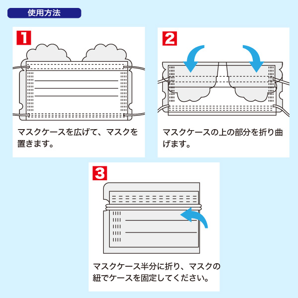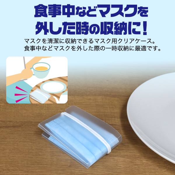 マスクを清潔に収納できるマスク用クリアケース。食事中などマスクを外した際の一時収納に最適です。
