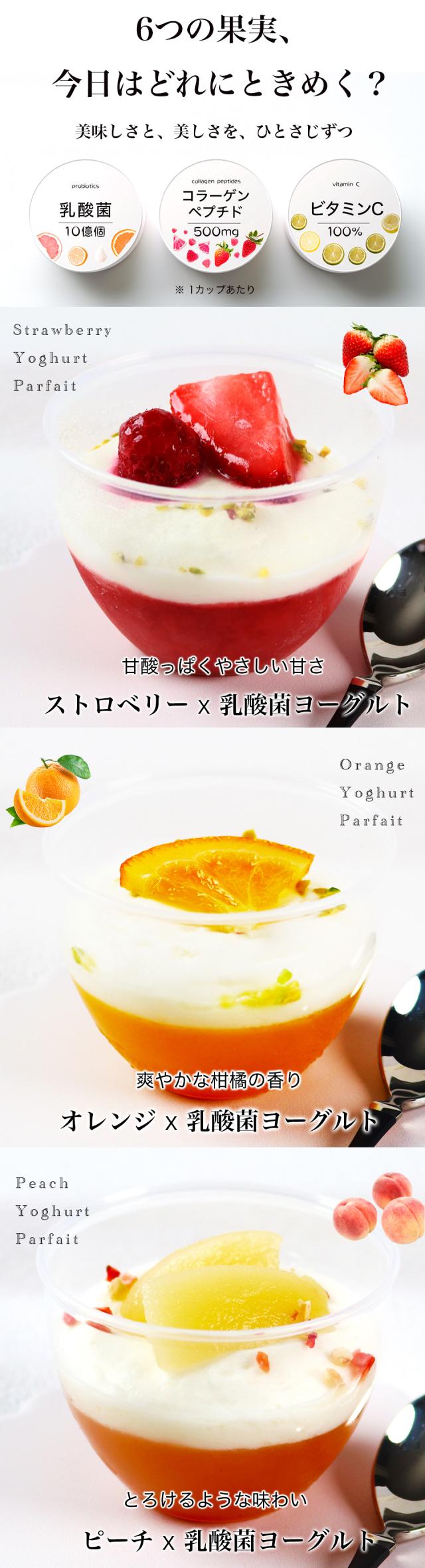 桃(フランス・中国産)、砂糖、クリーム(乳成分を含む)、乳製品、凍結殺菌加工卵白(卵白、食塩)、ブランデー、寒天、コラーゲンペプチド(ゼラチンを含む)、ゼラチン、苺、マルトデキストリン、乳酸菌(殺菌)/酸化防止剤(V.C)、酸味料、安定剤(ペクチン)、環状オリゴ糖、ゲル化剤(増粘多糖類)、乳化剤