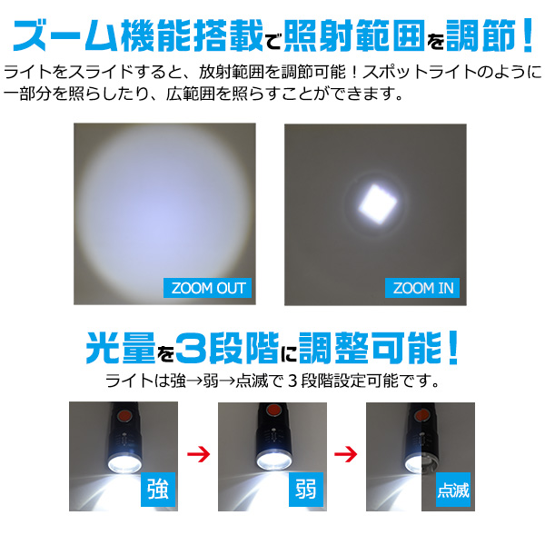 ■ズーム機能搭載で照射範囲を調節!コンパクトLEDズームハンドライト!