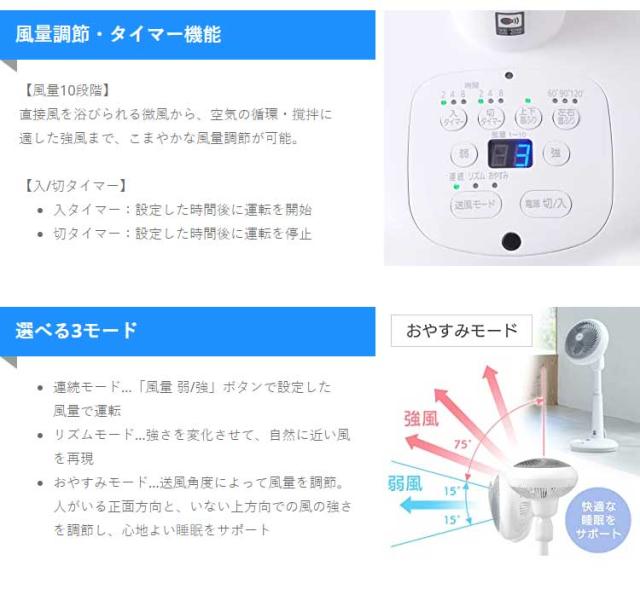 - 風量調節が10段階あり、日中、睡眠時、衣料乾燥時と使い分けることができます。サイズ感もコンパクトです。最大風量だと音が気になりますが、大満足です。