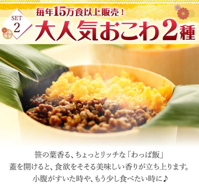- お正月にと思ってましたが、30日31日と急用が入り、いただいちゃいました。 レンジで美味しいおこわができました。詳しい説明書があり失敗せずに済みました。 私達夫婦には丁度の量で買って良かったです。腹持...