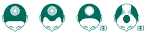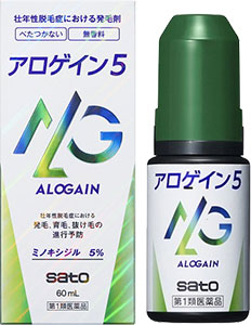 | 効能・効果 | 壮年性脱毛症における発毛、育毛および脱毛(抜け毛)の進行予防。 アロゲイン5は、図のようなパターンの脱毛あるいは薄毛に効果があります。 ![]() 注)脱毛範囲が図示以上の場合、効果が得られない可能性があります。 ※毛髪が成長するには時間がかかります。効果がわかるようになるまで少なくとも4か月間、毎日使用してください。 |