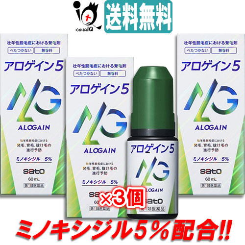 【第1類医薬品】アロゲイン5 60ml × 3個セット【佐藤製薬】ミノキシジル5%配合 発毛 育毛 脱毛 抜け毛予防 増毛 発毛促進 べたつき 無香料 AGA 髪質 頭皮ケア 塗り薬 増やす 生える 効く おすすめ まとめ買い