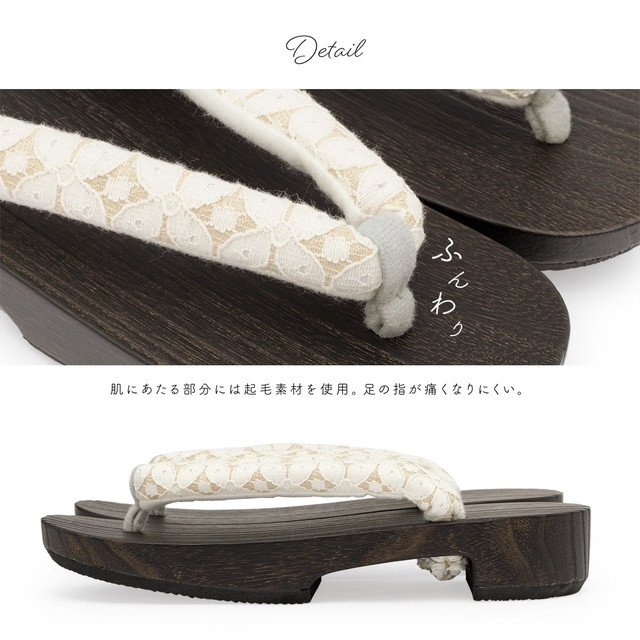 単色の生地の上にレース生地を重ねた鼻緒が上品なデザインです。