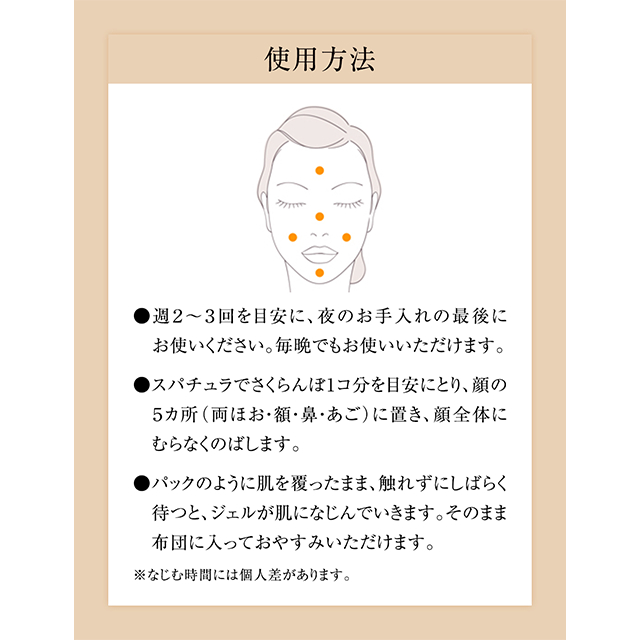 ●週2〜3回を目安に、夜のお手入れの最後にお使いください。毎晩でもお使いいただけます。