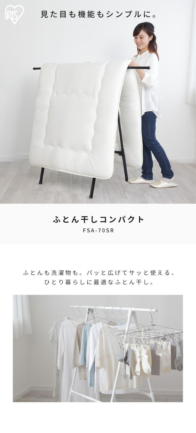 布団干し アイリスオーヤマ 布団干しスタンド コンパクト 洗濯物干し 折りたたみ 収納 布団1枚分 ベランダ 屋外 軽量 組立簡単 工具不要 室内 物干し 部屋干し 梅雨 除湿機 サーキュレーター 花粉 白 黒 一人暮らし 防犯 ふとん干し FSA-70SR *