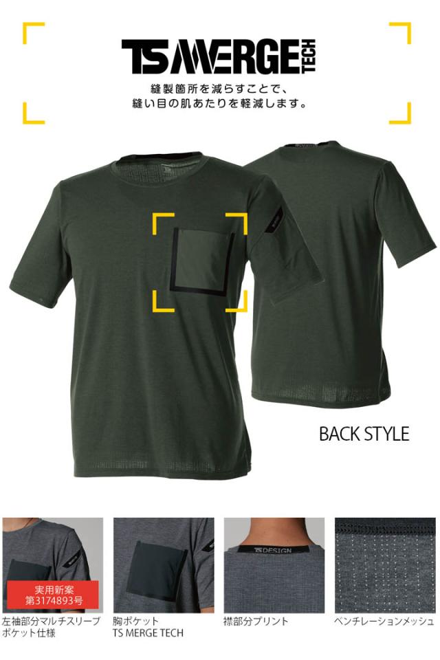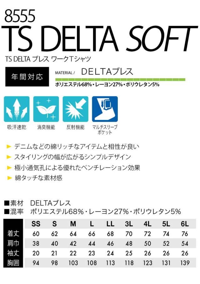 TSデザイン 半袖Tシャツ ワークTシャツ 8555 半袖シャツ オールシーズン 吸汗速乾 消臭 反射 藤和 TS-DESIGN
