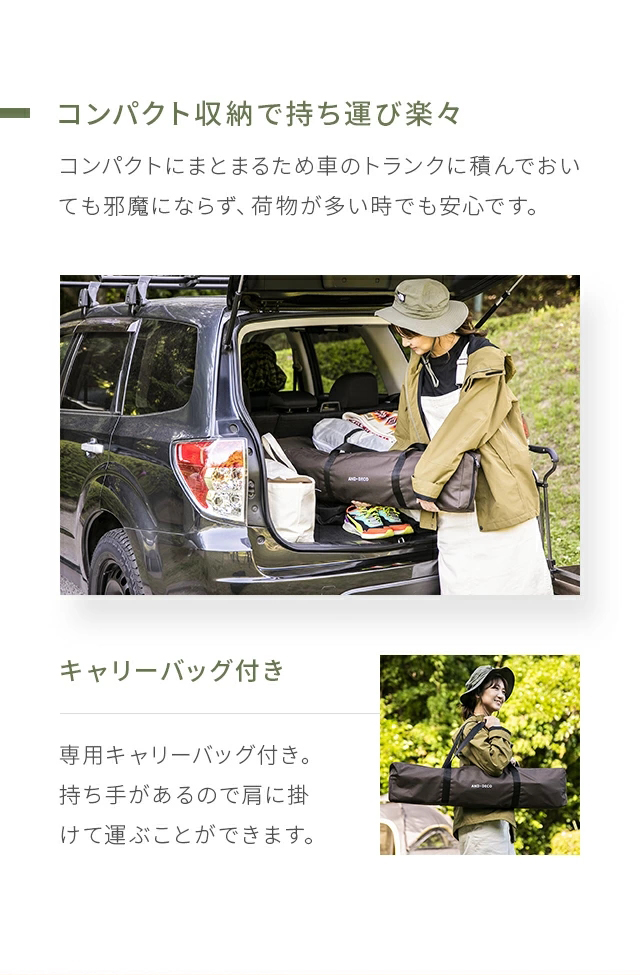 コーディネート使用アイテム ワンタッチドームテント ヘキサタープテント ハイバックチェア フォールディングチェア 2人掛けベンチチェア ウッドテーブル 90×60cm ワイドタイヤ キャリーワゴン |